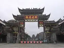 Because of Pingtan's location, it experiences strong sea winds throughout the entire year. To combat the weather, villagers build their houses with rocks. The old traditional stone-built houses are resistant to wind and roaring waves.[14] Moreover, the house are comfortable to live in. This special architectural style attracts many tourists and boosts economic growth. Beigang village is a famous fishing villages, featuring a large number of stone houses.[15][16] Pingtan has a large ancient cultural building named Haitan Ancient City, a popular vacation site.[17]