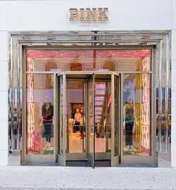 Pink (stylized PINK) is a lingerie and apparel line by Victoria's Secret, a former subsidiary of L Brands, targeting younger women than their main line. The target demographic skews younger from teenage girls (13–18) to young adult women through their mid-twenties (18–25).[1] PINK had a regular segment featuring their products in the Victoria's Secret Fashion Show, held through 2018. Sales at the company were initially swift, reaching $1 billion in 2010.[2] Reports of decline due to shifting consumer preferences appeared in 2018.[3][4][5]