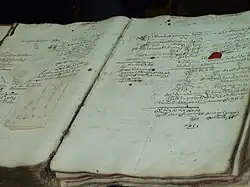 A pinkes (Yiddish: פּינקס, plural פּינקסים pinkeysim; Hebrew: פִּנְקֵס, also pinkas, פִּנְקָס, plural פִּנְקָסִים pinkasim) is the ledger of a Jewish community, in which the proceedings of and events relating to the community are recorded. Such record book were used to co-ordinate and document organizations in Jewish towns and villages throughout the early modern period in Europe.[1]