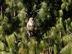| Himalayan buzzard (Buteo burmanicus) on Pinus bhutanica | |