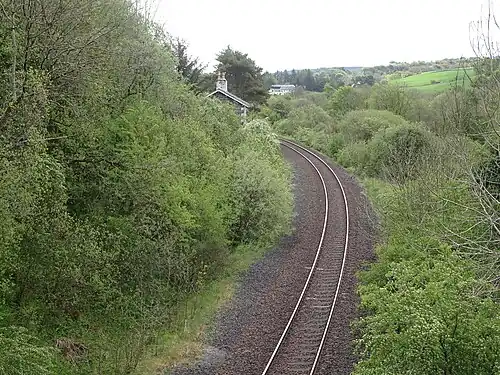 ![]() The site of the station, looking southeast to Barrhill, in 2019 | |||||