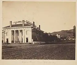 After the Saints arrived in the Salt Lake Valley and established themselves, a need for entertainment emerged. While traveling across the plains, the Saint's source of entertainment came from singing and dancing around the campfire when they had the energy. The first performances were performed in places of worship, one in particular being the Bowery.[9] Associations such as The Desert Drama Association were created. The first actual theatre was the Social Hall, then the Bowrings Theatre, and then the Salt Lake Theatre. These were all built before 1862. The Salt Lake Theatre was one of the most popular attractions for sixty years. It was only until after World War I when the film industry increased that the Theatre lost popularity and was eventually demolished in 1928.[10] The buildings focused on replicating opera houses resulting in very elegant architecture. While these buildings did not contain the same sacredness as the temples, they still received the same dedication, focus, and craftsmanship in their construction.