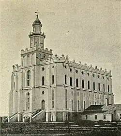 Temples are a significant aspect of The Church of Jesus Christ of Latter-day Saints even today. Church members value temples mainly because of the sacred space it provides for necessary temple ordinances to be performed.[3] While the Salt Lake City temple was being built, the Saints established and utilized an Endowment House where they could perform these sacred ordinances, such as sealings and endowments, that would traditionally be done in the temple. The architecture of the temples built in Utah during the Pioneer Period, specifically the Salt Lake Temple, were meant to have a "civic as well as religious function," as government and religion were thoroughly intertwined while the Latter-day Saints dominated the area.[4]