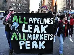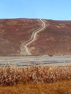 A pipeline is a system of pipes for long-distance transportation of a liquid or gas, typically to a market area for consumption. Data from 2014 give a total of slightly less than 2.175 million miles (3.5 million kilometres) of pipeline in 120 countries around the world.[1] The United States had 65%, Russia had 8%, and Canada had 3%, thus 76% of all pipeline were in these three countries.[1] The main attribute to pollution from pipelines is caused by corrosion and leakage.[2]