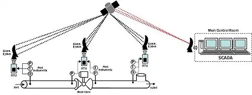 The information measured by these field instruments is then gathered in local remote terminal units (RTU) that transfer the field data to a central location in real time using communication systems, such as satellite channels, microwave links, or cellular phone connections.