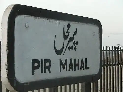 Pir Mahal Railway Station (Urdu: پیر محل ریلوے اسٹیشن, Punjabi: پیر محل ریلوے اسٹیشن) is located in town of Pir Mahal district of Toba Tek Singh, Pakistan.