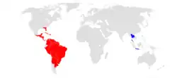 | Distribution of Piriqueta as of 2023. Natural (red) and introduced (blue) | |