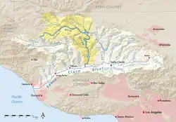 ![]() Map of the Santa Clara River watershed, with the Piru Creek sub-watershed highlighted. | |
