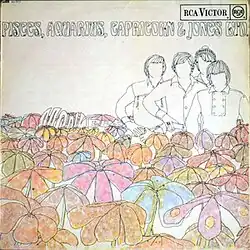 The album was preceded by the release of "Pleasant Valley Sunday" b/w "Words" on July 10, which was a hit, the two sides peaking at No. 3 and No. 11 respectively on the Billboard Hot 100. "Daydream Believer" b/w "Goin' Down", both recorded during the sessions and released on October 25, became their final No. 1 although the A-side was saved for inclusion on the following album, The Birds, the Bees & the Monkees.[4] Pisces, Aquarius, Capricorn & Jones Ltd. was itself released on November 14, 1967. After entering the Billboard 200 at No. 29, it jumped straight to No. 1 the next week and stayed in that position for five consecutive weeks, eventually selling over three million copies.[9] Producer Chip Douglas, however, later noted that the album would have probably sold many more copies had "Daydream Believer" been included as originally planned. In the UK, the album was released in January 1968 and charted at No. 5.[10]