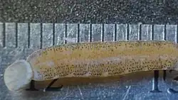 This leech can swim well and is attracted by the presence of a suitable fish in its vicinity. It feeds periodically, attaching itself to the fish's body with its sucking disc before puncturing its skin with its proboscis and sucking its blood. When satiated, it releases its grip and sinks to the bottom, hiding among stones or submerged plants while digesting its meal. It needs several blood meals before it can reproduce.[2] The mid-gut and adjoining mycetomes (pouches), contain symbiotic bacteria which help with the digestion of blood, provide additional nutrients, and prevent the entry of pathogens.[5][6]
