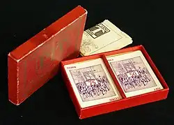 Pit is a fast-paced card game for three to eight players, designed to simulate open outcry bidding for commodities. The game first went on sale in 1904 by the American games company Parker Brothers.[1]