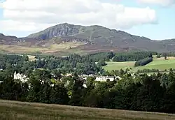 Ben Vrackie, at 841 m (2,759 ft), dominates the scenery around Pitlochry. The view is from the A9 looking north and shows part of the town of Pitlochry.