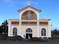 In April 1977, Piton Sainte-Rose was devastated by a lava flow from the Piton de la Fournaise, the active volcano of the island.[1] The village church was partly invaded by the lava flow but not destroyed.[2] The church was subsequently restored and renamed Notre Dame des Laves (Our Lady of the Lava). It is used for Catholic services.[3]