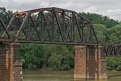 The Pinkerton's Landing Bridge (officially known as the Pittsburgh & Lake Erie Railroad Bridge at Munhall[2]) is a truss bridge that carries CSX Transportation's Pittsburgh Subdivision across the Monongahela River between Munhall, Pennsylvania and Rankin, Pennsylvania, United States. The structure's nickname references the 1892 Homestead strike.