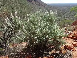 Pityrodia augustensis, commonly known as Mount Augustus foxglove,[2] is a flowering plant in the mint family Lamiaceae and is endemic to a small area in Western Australia. It is a small, bushy shrub with its branches, leaves and some of its flower parts densely covered with woolly hairs. It is similar to the lovely foxglove (Dasymalla axillaris) and the sandplain foxglove (Dasymalla terminalis) but has very different leaves from those species.