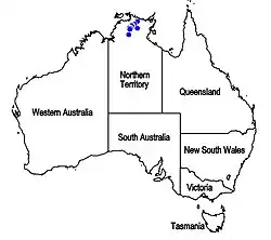 This pityrodia occurs in Arnhem Land near Mount Gilruth in the Kakadu National Park including the Arnhem Plateau and Pine Creek biogeographic regions.[2][3]