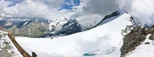 Several glaciers lie on the east side on the massif. The largest, below Piz Corvatsch, is named Vadret dal Murtèl. The second largest, below Piz Murtèl and the station, is named Vadret dal Corvatsch.