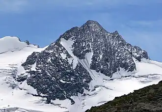 Piz Glüschaint is a mountain of the Bernina Range (Alps), on the border between Italy and Switzerland. It lies between the Val Roseg (Graubünden) and the Val Malenco (Lombardy). On its northern side is the Roseg Glacier.