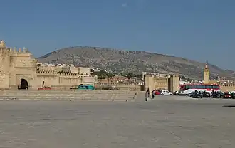The square likely dates from the Almohad period (early 13th century) when most of the surrounding fortifications were constructed by Muhammad al-Nasir.[1] It was originally used as military parade ground and staging area but was also used as a camping ground for caravans and as a promenade and entertainment ground in the evenings.[2] On the south side of the square was the Kasbah Bou Jeloud, a formerly walled compound that was occupied by the authorities and by the governor of Fes from the Almohad period to the 20th century, but which today is a common neighbourhood.[2]