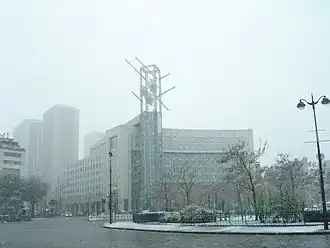 The Italie 13 project, a grand exercise in urbanism, was conceived in the 1960s, and, under this plan, the Place d'Italie represented the center of a district of high-rise towers stretching out along the entire length of the Avenue d'Italie, with the construction of a truly eye-catching tower, taller than the Montparnasse Tower, called the Apogee Tower, on the Place d'Italie itself. The project began with the construction, close to the Place d'Italie, of six inter-related towers, each about one hundred metres tall, but, because of scathing criticism from the Parisian citizenry and lukewarm support from the Giscard d'Estaing government, the effort, for the most part, was abandoned in 1975. Some sort of mast or multi-colored campanile, conceived by Kenzo Tange, is now planned for the plot of land originally expected to be used by the Apogee Tower, replaced, since 1992, by a collection of smaller buildings, an office building, a luxury residential building, as well as the famous audio-visual complex, Grand Écran Italie (Big Screen Italy).