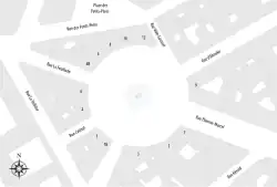 The Place des Victoires (French pronunciation: [plas de viktwaʁ]; English: Victory Square, lit. 'Square of Victories') is a circular square in central Paris, located a short distance northeast of the Palais-Royal and straddling the border between the 1st and the 2nd arrondissements. The Place des Victoires is at the confluence of six streets: the Rue de la Feuillade, Rue Vide-Gousset, Rue d'Aboukir, Rue Étienne-Marcel, Rue Croix-des-Petits-Champs and Rue Catinat.