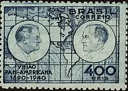 Donovan claimed Vargas kept pro-Nazi officers in their posts — Dutra, his aide Filinto Müller and Góis Monteiro — as an "insurance" for an Axis victory in the war. On the other hand, the Estado Novo's Minister of Foreign Affairs, Osvaldo Aranha, was pro-American.[40] Dutra's and Góis Monteiro's germanophile attitudes are recognized by Brazilian historians of several political currents;[41] the latter even declared general Miller, Chief of the U.S. Military Mission to Brazil, persona non grata,[40] but also played an important role in the Brazil-US military rapprochement.[42]