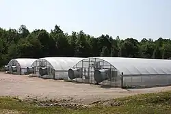 The institute operates three greenhouses. The greenhouse complex provides about 10,000 square feet of space for plant trials on crops like broccoli and strawberry and allows the institute to rent space or collaborate on research with other campus operations and businesses.[21]