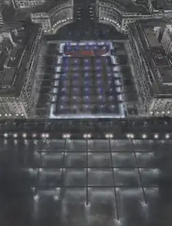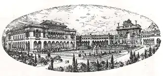 Hébrard designed the monumental axis so that looking uphill from the square one could see the city's Byzantine walls and the Upper Town.[3][4][6] Also visible from the square would be what Hébrard called the Place Civique or Civic Square, which would be the city's administrative heart along European lines:[3][4] it would feature the City Hall on the left, the court houses on the right and a grand triumphant arch leading uphill from the Civic Square. This part of the design was never realized due to a lack of funds,[3] although following archeological excavations unearthed the ancient Roman agora at the same spot were the Civic Square was planned.