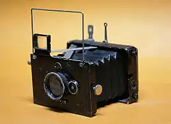 The Plaubel Makina was a series of medium format press cameras. Makina cameras had leaf shutters and rangefinder focusing with collapsible bellows, except for the specialized 69W Proshift model.