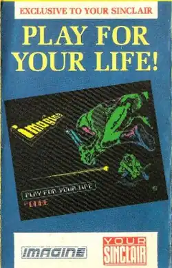 Play For Your Life is an isometric action game produced by Ocean for the ZX Spectrum and published by Your Sinclair as a cover tape game in 1988.[1] The game is a simulation of a futuristic tennis-like sport played by robots with bats in an enclosed room.
