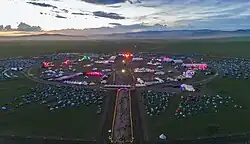 Traditionally taking place in early July, the weekend before Naadam, the festival features a diverse lineup of local and international acts, featuring genres such as rock, pop, indie, hip-hop, metal and electronic music.[3][4] In 2024, the festival was held from July 4th to 7th at the newly established Playtime Field in Nalaikh, Ulaanbaatar. This venue is approximately 50 kilometers from the city center, accommodates up to 30,000 attendees daily and emphasizes sustainability with eco-friendly initiatives.[5][6]