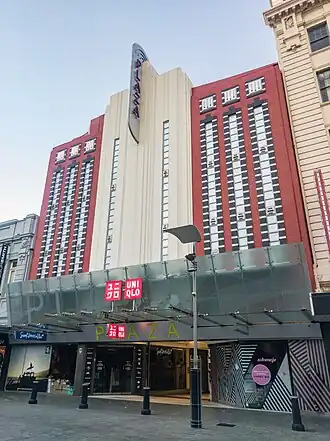 The former Plaza Theatre is located at 650–658 Hay Street, Perth, Western Australia. It was the first purpose-designed Art Deco cinema in Perth.[1] The Plaza Theatre opened in 1937 and was built for Hoyts Theatres Ltd.