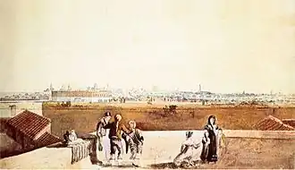 The Plaza de Toros del Retiro was the successor of the Plaza de Toros de Montserrat, inaugurated in 1791, and closed in 1800.[6] This property was located in the current Plaza San Martín, on land that belonged to Miguel de Riglos, and later the Asiento de Inglaterra, a branch in Buenos Aires of the South Sea Company.[7] During the English invasions, the bullring was taken by the troops of Whitelocke, being also the scene of the Battle of the Retiro, between the troops of Santiago de Liniers and Samuel Auchmuty.[8]