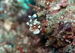 Plectorhinchus chaetodonoides, the harlequin sweetlips, clown sweetlips, spotted sweetlips or many-spotted sweetlips, is a species of marine ray-finned fish, a sweetlips belonging to the subfamily Plectorhinchinae, one of two subfamilies in the family Haemulidae, the grunts. It is native to the Indo-Pacific region. This species is of minor importance to local commercial fisheries and can be found in the aquarium trade.