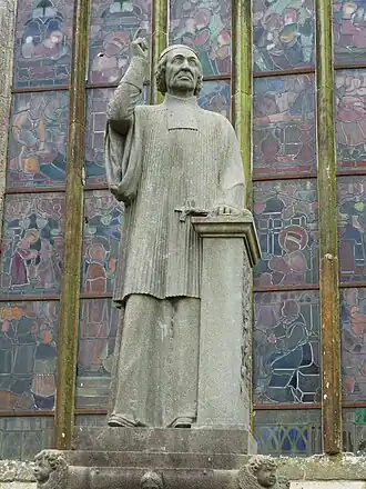This is located by the small south east door. This famous priest had been born in Guervenan in Plougonven in 1783 and died there in 1883. The statue adorning the tomb is the work of Yann Larhantec. The statue depicts Le Teurnier giving a speech and standing by a chair with bas-relief carvings of the "taolennou". The taolennou was a painted teaching device famously used by Michel Le Nobletz.