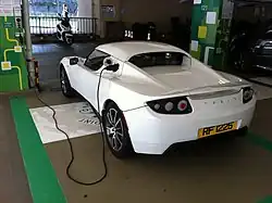 In 2009, 28 local EVs were registered; as of 30 April 2016, 5,042 EVs (4,899 were private vehicles) were registered for road use.[9] In October 2017, there were 11,039 EVs for road use, up from less than 100 at the end of 2010. As of 2017, 73 EV models from eight countries have been type-approved by the Transport Department. These include 51 models for private cars and motorcycles and 22 models for public transport and commercial vehicles.[10] There is a 3% growth in new EV registrations, which is higher than other developed automobile markets.[11] From January to May 2015, more than 1,110 longer-range models of Tesla EVs were sold, accounting for nearly 95% in the EV market.[12]