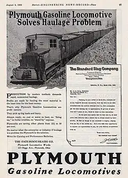 - ^ Chas. A. Trask, Tractor Friction Transmissions, Journal of the Society of Automotive Engineers, Vol. II, No. 6 (June 1918); page 440. Page 444 discusses the Plymouth locomotive, with a drawing and photograph on page 445.