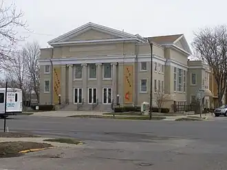 Plymouth Northside Historic District is a national historic district located at Plymouth, Marshall County, Indiana. The district encompasses 141 contributing buildings, 2 contributing sites, 6 contributing structures, and 3 contributing objects in a predominantly residential section of Plymouth. It developed between about 1870 and 1940, and includes examples of Italianate, Gothic Revival, Queen Anne, Colonial Revival, Tudor Revival, Neoclassical, and Renaissance Revival style architecture. Located in the district is the separately listed Marshall County Courthouse. Other notable contributing resources include Magnetic Park (c. 1885, 1937), First United Methodist Church (1914-1915), J.C. Capron House (1900), Samuel Schlosser House (1910-1911), Clay Metsker House (1917-1918), Plymouth Church of the Brethren (1950-1951), Logan-Stanley Fountain (c. 1902), Stevens House (1895), and First Presbyterian Church (1896-1897).[2]