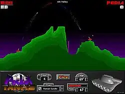 The goal of Pocket Tanks is to use various weapons to attack the other player's tank. Each hit scores a certain number of points, which varies based on the weapon and the proximity of the target. At the end of 10 volleys, the player with the highest score wins.