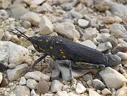 - ^ a b c Fishelson, L. (1960). "The biology and behavior of Poekiloceros bufonius Klug, with special reference to the repellent gland (Orth. Acrididae)". Eos (Madrid). 36: 41–62.