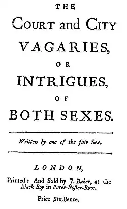 Europe witnessed the generic shift in the titles of works in French published in Holland, which supplied the international market and English publishers exploited the novel/romance controversy in the 1670s and 1680s.[69] Contemporary critics listed the advantages of the new genre: brevity, a lack of ambition to produce epic poetry in prose; the style was fresh and plain; the focus was on modern life, and on heroes who were neither good nor bad.[70] The novel's potential to become the medium of urban gossip and scandal fueled the rise of the novel/novella. Stories were offered as allegedly true recent histories, not for the sake of scandal but strictly for the moral lessons they gave. To prove this, fictionalized names were used with the true names in a separate key. The Mercure Gallant set the fashion in the 1670s.[71] Collections of letters and memoirs appeared, and were filled with the intriguing new subject matter and the epistolary novel grew from this and led to the first full blown example of scandalous fiction in Aphra Behn's Love-Letters Between a Nobleman and His Sister (1684/ 1685/ 1687). Before the rise of the literary novel, reading novels had only been a form of entertainment.[72]