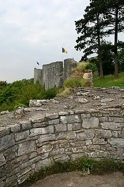 The present ruins date from the 15th century, although there has been a fortification on the site since the time of Charlemagne. The Liégeois town of Poilvache, a thriving walled town, protected by a castle, with a prosperous economy and its own mint, and allied to Duke Philippe the Good, virtually ceased to exist following its 1430 siege by the rebellious Prince-Bishop of Liège, Jean de Heynsbergh, and an estimated army of 30,000 Liégeois, Dinantais and Hutois.[1] The Dinantais besiege Montaigle Castle in 1465 for the same reasons but Montaigle was destroyed in the 16th century by the army of Henri II of France.