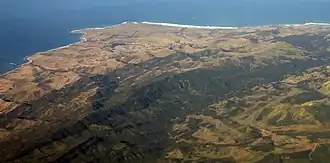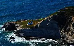 Point Conception (Chumash: Humqaq; Spanish: Punta Concepción) is a headland along the Gaviota Coast in southwestern Santa Barbara County, California, United States. It is the point where the Santa Barbara Channel meets the Pacific Ocean, and as the corner between the mostly north-south trending portion of coast to the north and the east-west trending part of the coast near Santa Barbara, it makes a natural division between Southern and Central California,[1] and is commonly used as such in regional weather forecasts.[2] Point Conception Light is at its tip and the Jack and Laura Dangermond Preserve covers some of the surrounding land.