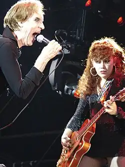 The band used the phrases gothabilly,[18] psychobilly[19] and "rockabilly voodoo" to market their music.[13][20] The term "psychobilly" was first used in the lyrics to the country song "One Piece at a Time", written by Wayne Kemp for Johnny Cash, which was a Top 10 hit in the United States in 1976. The lyrics describe the construction of a "psychobilly Cadillac using stolen auto parts."[20] The Cramps have since rejected the idea of being a part of a psychobilly subculture, noting that "We weren't even describing the music when we put 'psychobilly' on our old fliers; we were just using carny terms to drum up business. It wasn't meant as a style of music."[20] Nevertheless, The Cramps, along with artists such as Screamin' Jay Hawkins, are considered important precursors to psychobilly.[20] Critics and journalists classified the Cramps' sound as psychobilly,[21][22][23][24] gothabilly,[18][25][26] garage punk,[27][28] rockabilly,[29][30][31] horror punk,[32] garage rock,[33] punk rock[30] and surf.[30]
