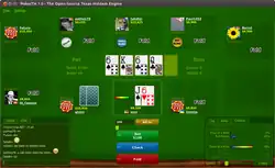 PokerTH is an open-source Texas hold 'em simulator that runs on Windows, Mac OS X, Linux, and Android. PokerTH is written in C++ using the Qt framework and allows for up to ten human players, with computer-controlled players filling in if there are not enough humans. Players can also play against other PokerTH users online. The game has ample settings so that players can configure and customize play.[1] The online community is still active as of July 2022, with dozens of active players and several running games at any given time.