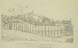 The first important crisis of the community took place in 1457, in the form of an epidemic of the Black Death, to which twelve nuns succumbed. The second was the invasion of the nunnery by Huguenots in 1562, which forced the nuns to take refuge in Montluel.[6]