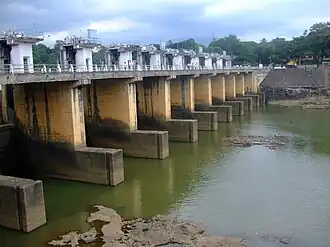 The Polgolla Barrage (also erroneously known as the Polgolla Dam) is a barrage built across the Mahaweli River at Polgolla, in the Central Province of Sri Lanka. The main purpose of the barrage is to maintain the water level of Mahaweli river at a constant height to provide a uniform potential head at the intake to the underground tunnel which conveys water to Ukuwela powerplant.[1][2]