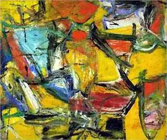 Police Gazette is a landscape painted on canvas using abstract elements, and colors such as yellow, green and red.[2] It is a painting with simple geometric forms, creating a contrast between the formal elements that compose the artwork. It was this painting that promoted Willem de Kooning amongst the most important contemporary abstract painters.