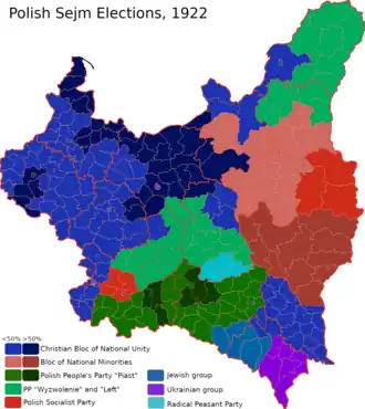 Parliamentary elections were held in Poland on 5 November 1922, with Senate elections held a week later on 12 November.[2] The elections were governed by the March Constitution of Poland, and saw the Christian Union of National Unity coalition emerge as the largest bloc in the Sejm with 163 of the 444 seats.