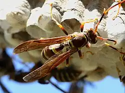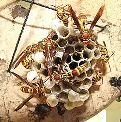 - ^ a b Reed, Hal C.; Vinson, S. B. (1979). "Nesting Ecology of Paper Wasps (Polistes) in a Texas Urban Area (Hymenoptera: Vespidae)". Journal of the Kansas Entomological Society. 52 (4): 673–689. JSTOR 25083981.